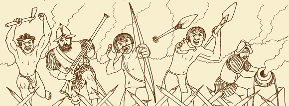 The indians of the Maridalo Chief fighting next to Spaniards against the men of Cote.